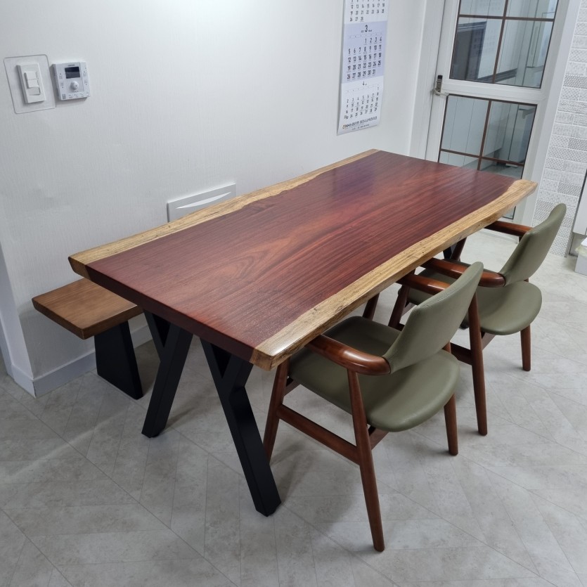가정집으로 배송되었던 심재가 붉은색을 띄는 파덕 우드슬랩입니다.