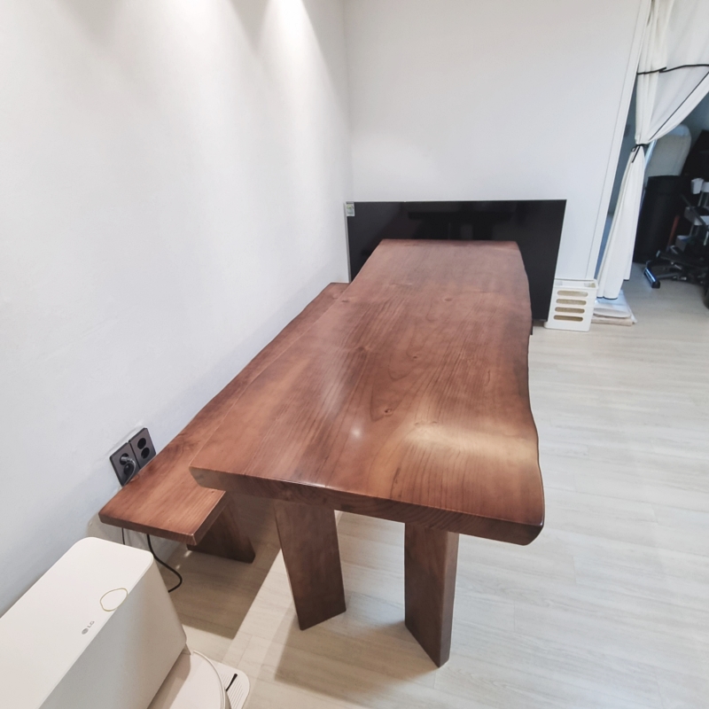 벽면에 동일한 수종으로 벤치 의자를 함께